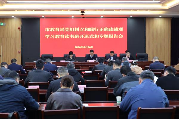 3月26日,市教育局党组举行树立和践行正确政绩观学习教育读书班开班式和专题辅导报告会。邀请市委党校党史党建教研室副主任胡振作专题辅导报告。市教育局党组成员、副局长王月辉主持并讲话,强调要深入学习贯彻习近平总书记关于树立和践行正确政绩观重要论述,全面落实党中央及省、市委学习教育部署要求,推动全市教育系统党员干部深学细悟、校准偏差、实干担当,为推进“十五五”教育事业凝聚思想共识、汇聚奋进力量。市教育局党组成员、调研员、机关科室及二级机构负责人,局属各学校党组织书记、校长参加会议。